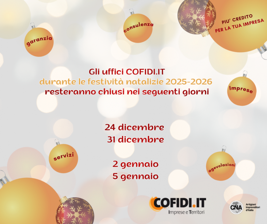 COFIDI.IT soc. coop. Titolare del trattamento, utilizza sul proprio sito Cookie Tecnici Necessari e Statistici di Terze Parti (impostati da un sito diverso da quello visitato) per migliorare e personalizzare la tua esperienza di navigazione. Cliccando su "Accetta tutti" acconsenti all'utilizzo di tali tecnologie. Ciccando su "Rifiuta" o su "X chiudi" continui la tua navigazione in assenza di Cookie Statistici, Marketing, Analitici e Profilazione. Consulta l'Informativa Cookie per maggiori informazioni e modificare in qualsiasi momento i consensi rilasciati.