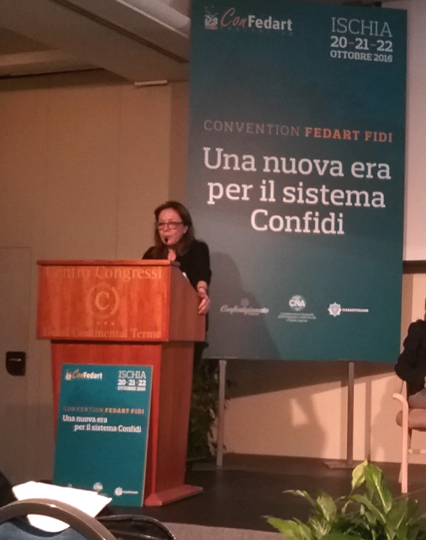 COFID.IT fa una scelta coraggiosa e innovativa per il prossimo futuro, per stare al passo con le evoluzioni del sistema creditizio e di garanzia: Il Progetto Pilota del Piccolo Credito, presentato alla platea degli altri confidi dal Direttore Generale COFIDI.IT Teresa Pellegrino nel corso della Terza sessione - L'innovazione e le riforme del quadro normativo per una nuova configurazione del sistema - nell'ambito della Convention ''Una nuova era per il sistema confidi'' organizzata da Fedart Fidi a Ischia.